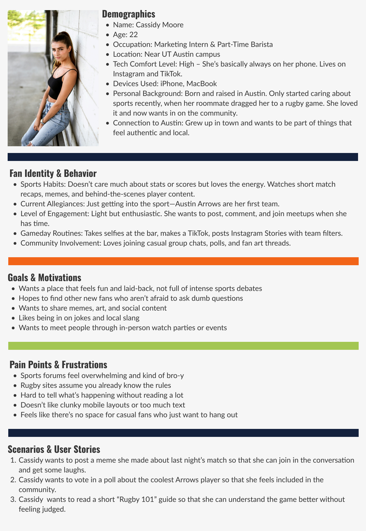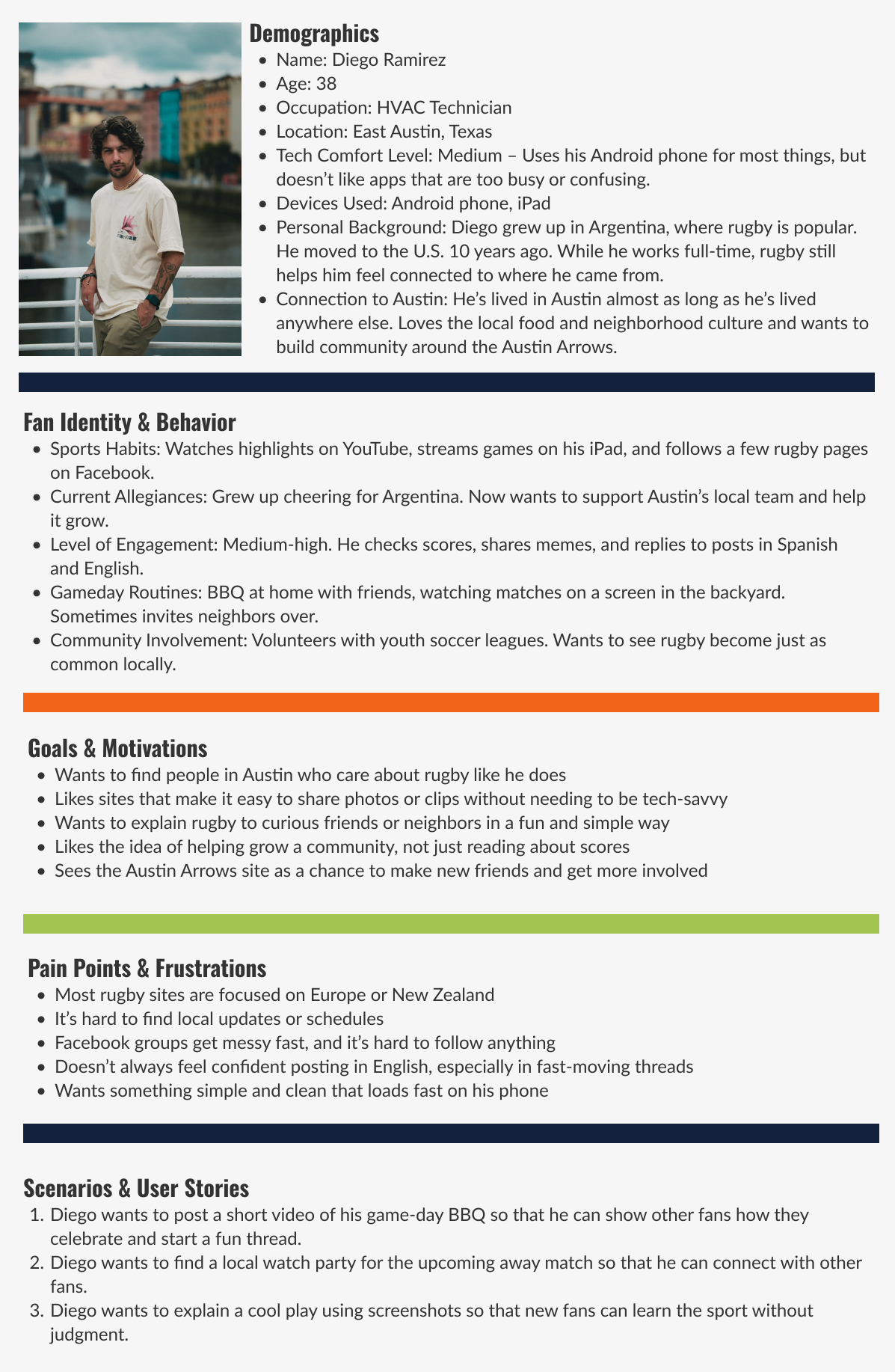 The Austin Rugby Hub was designed to solve the lack of a dedicated, local digital space for rugby fans in Austin. While global platforms like Reddit or major rugby websites provide content, they do not support local community interaction or fan engagement.